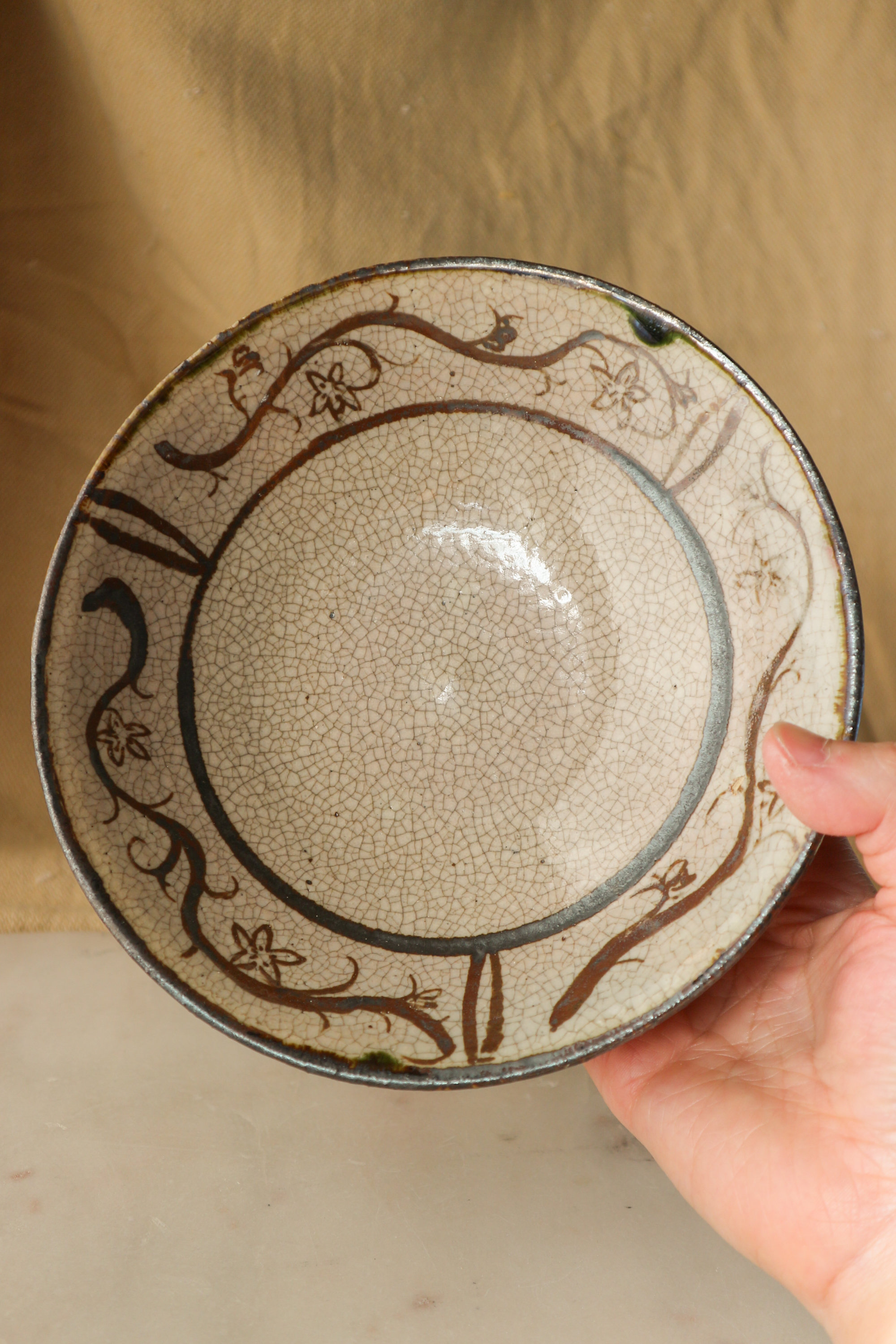 Seto, Aichi Region Stoneware, Ofuke Glaze with Iron Oxide Details