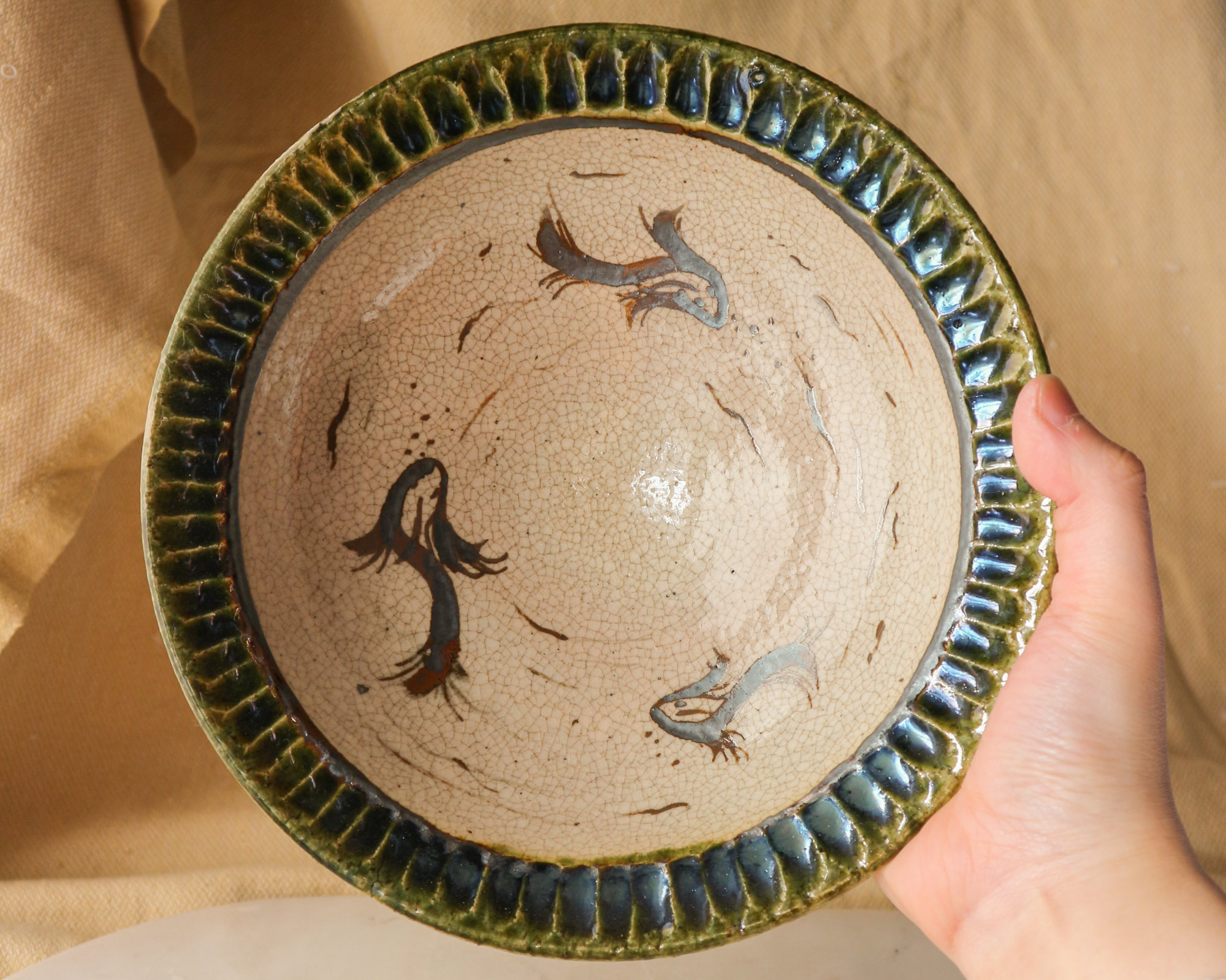 Seto, Aichi Region Stoneware, Oribe Glaze with Iron Oxide Details