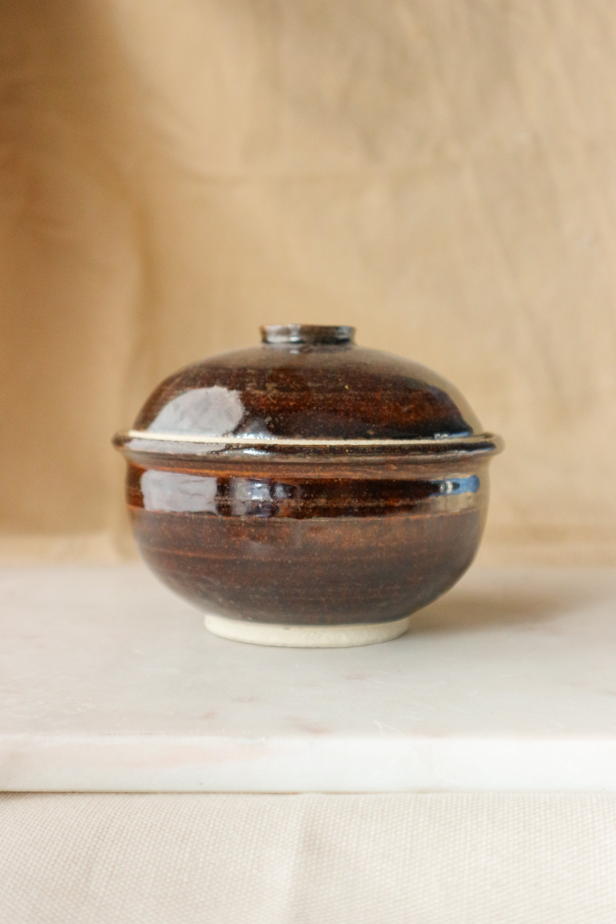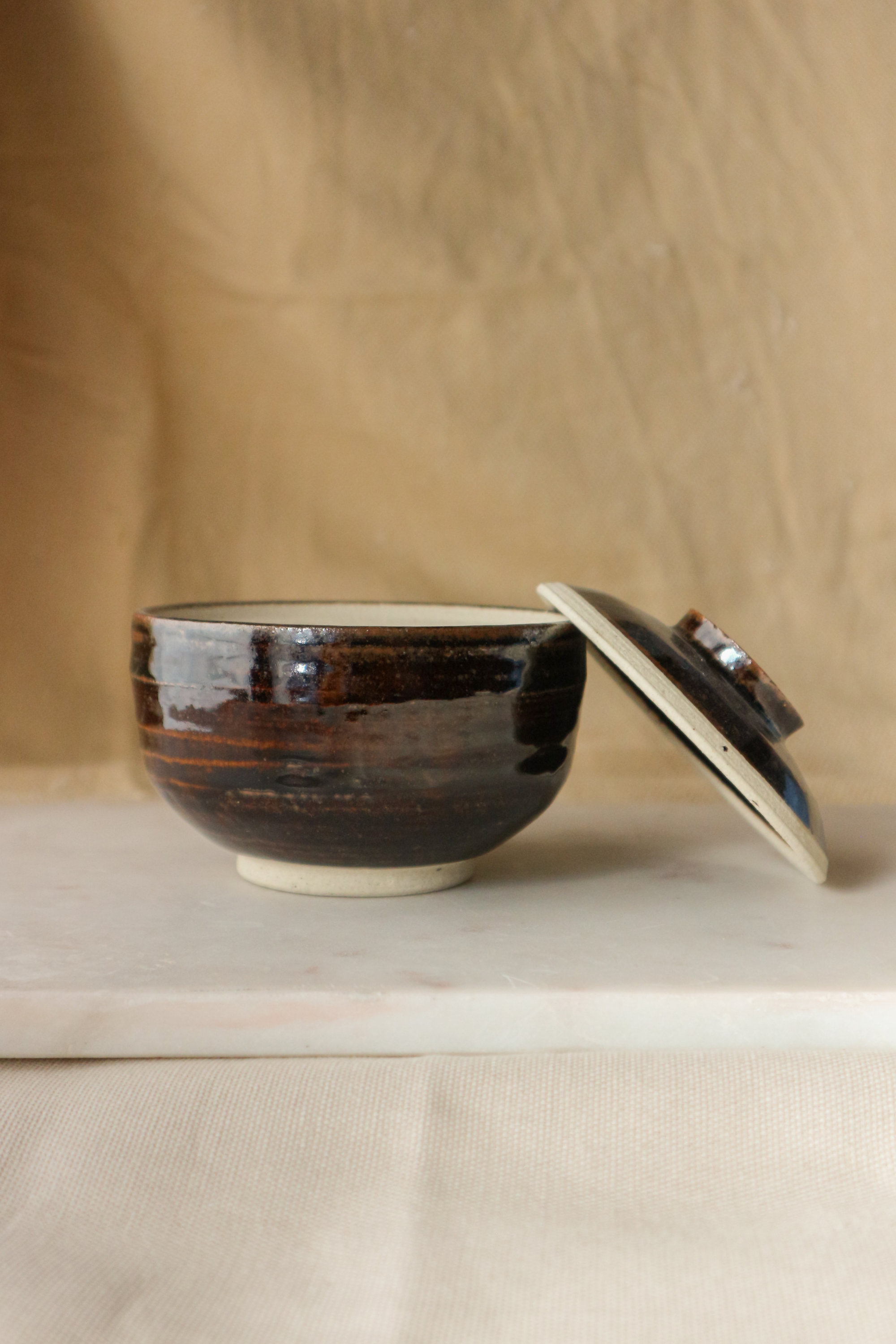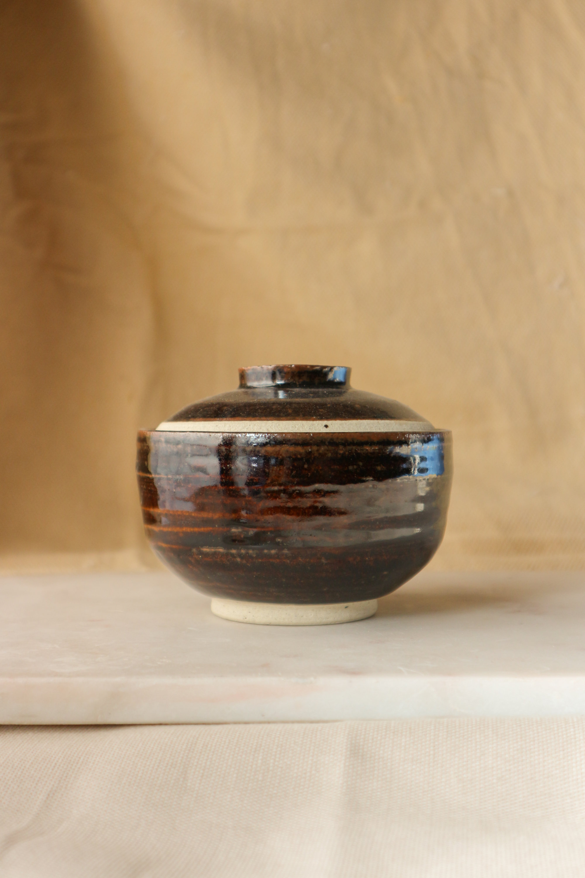 Tenmoku-glazed Stoneware Lidded Vessel (蓋物), 2024