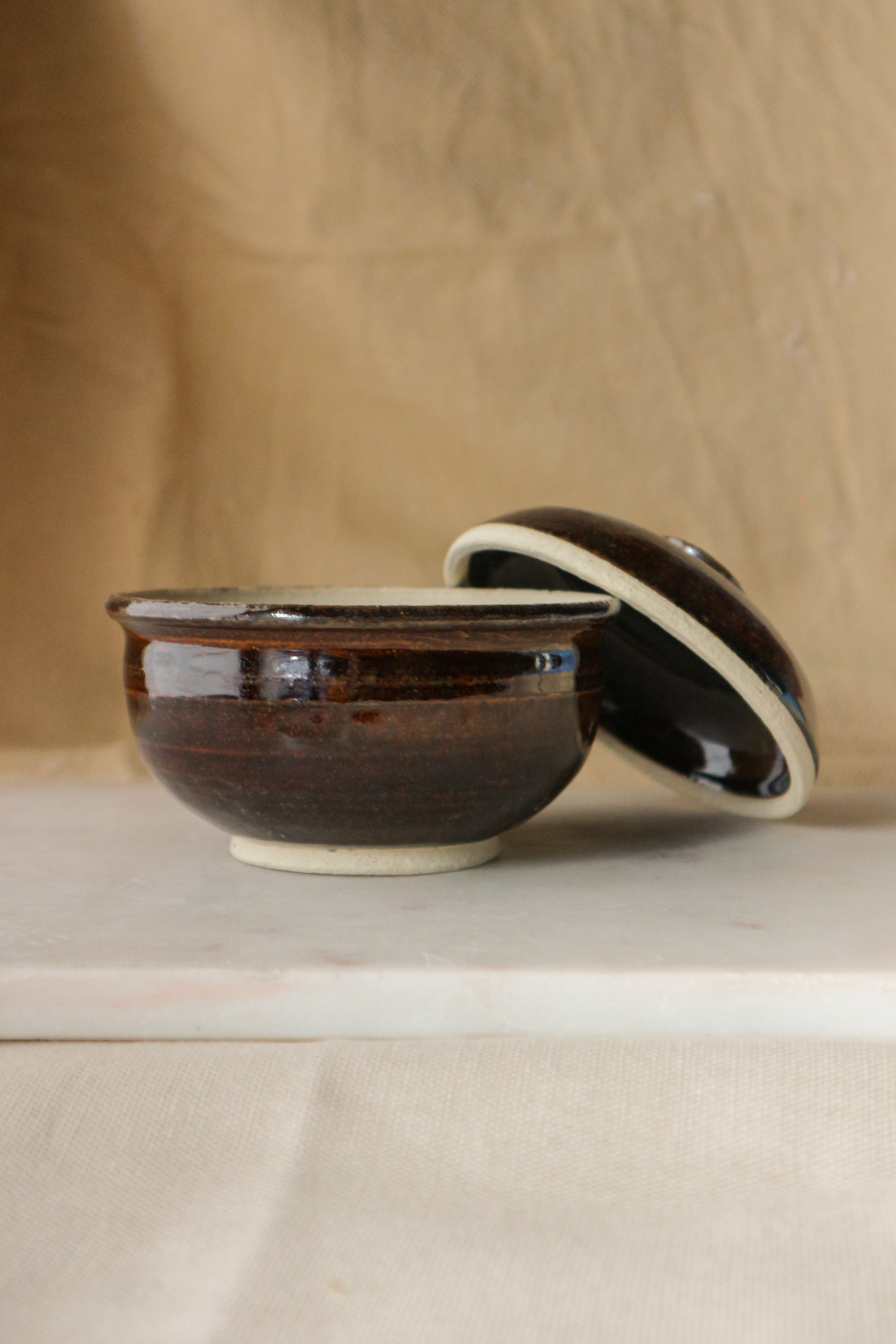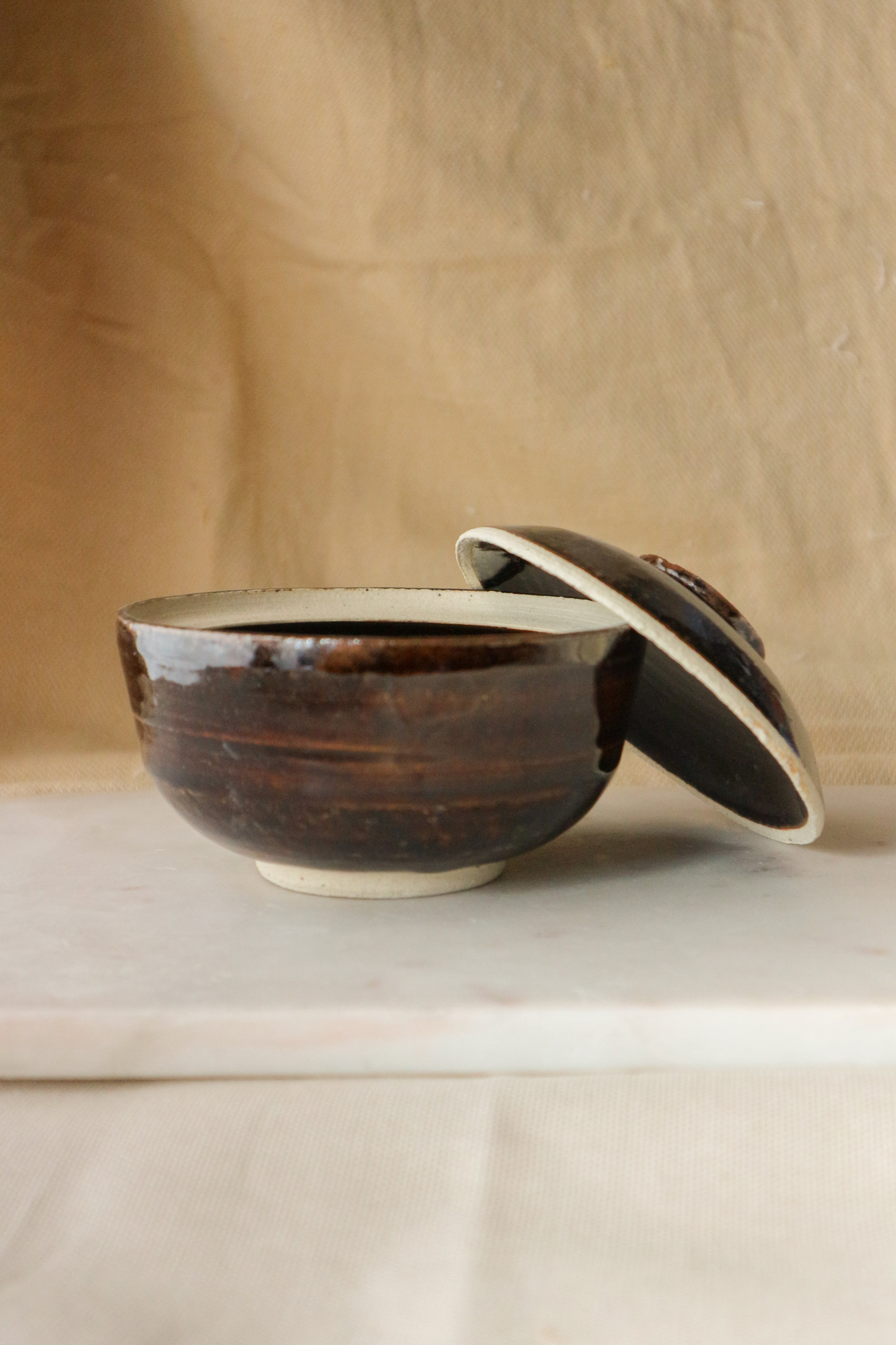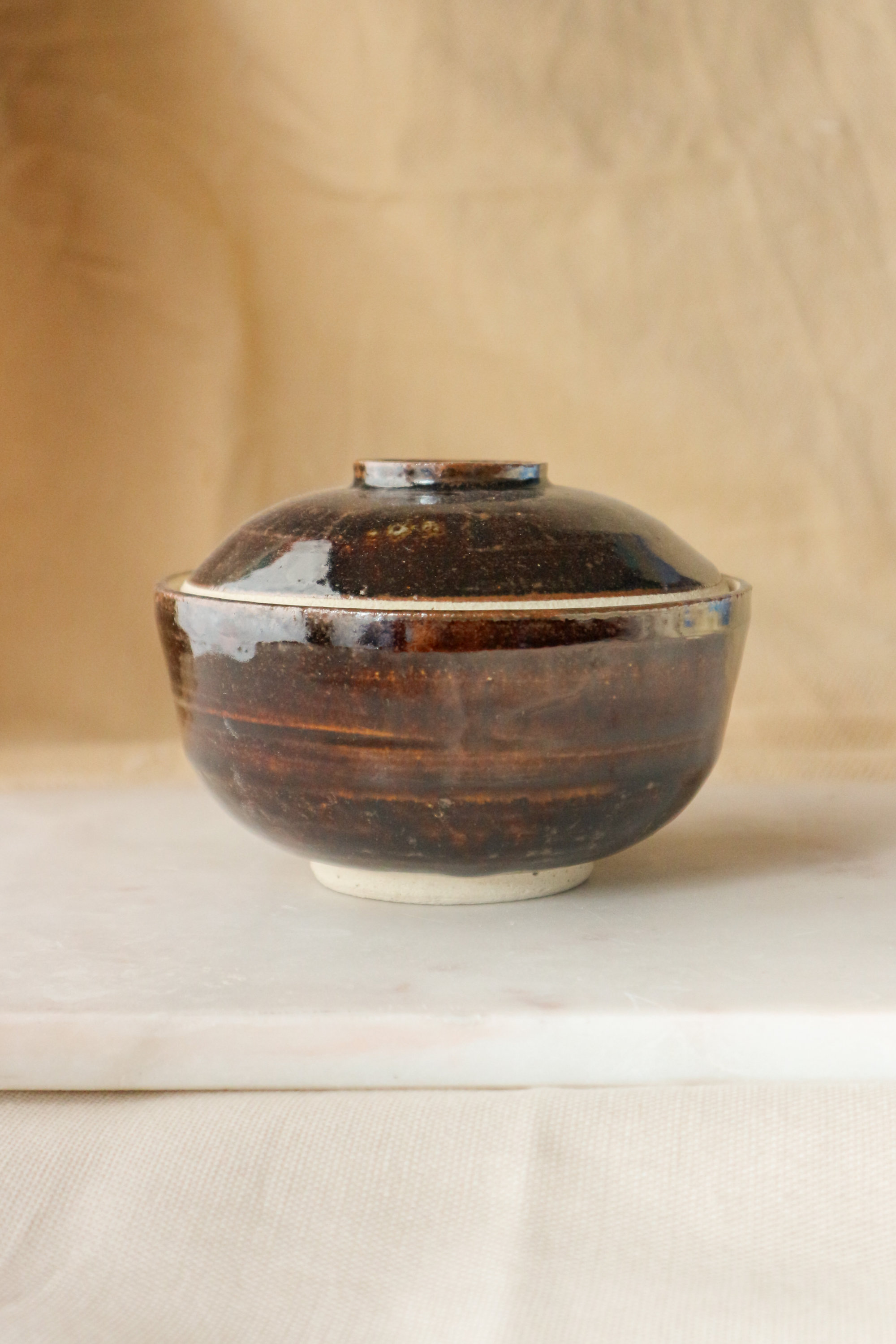 Tenmoku-glazed Stoneware Lidded Vessel (蓋物), 2024