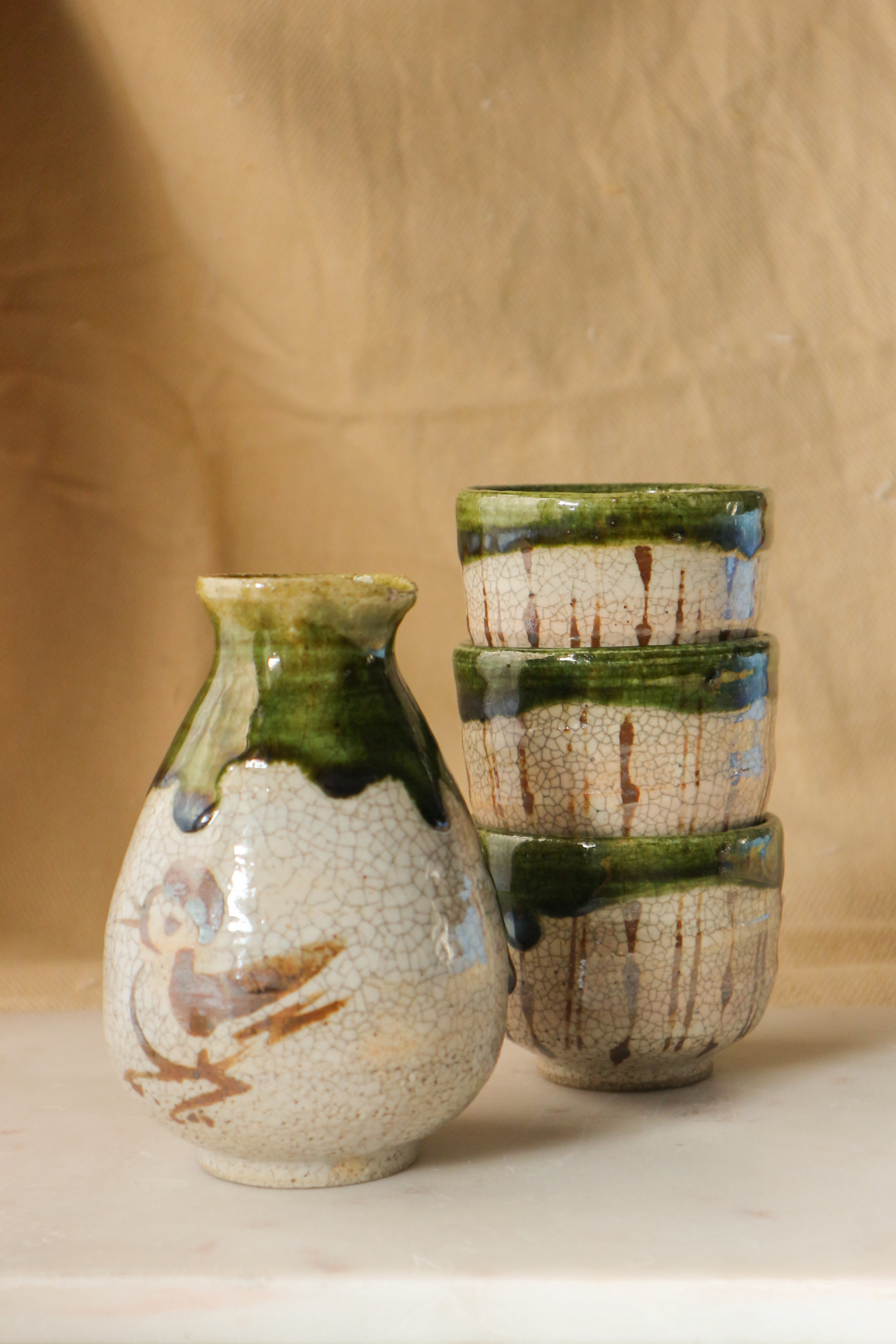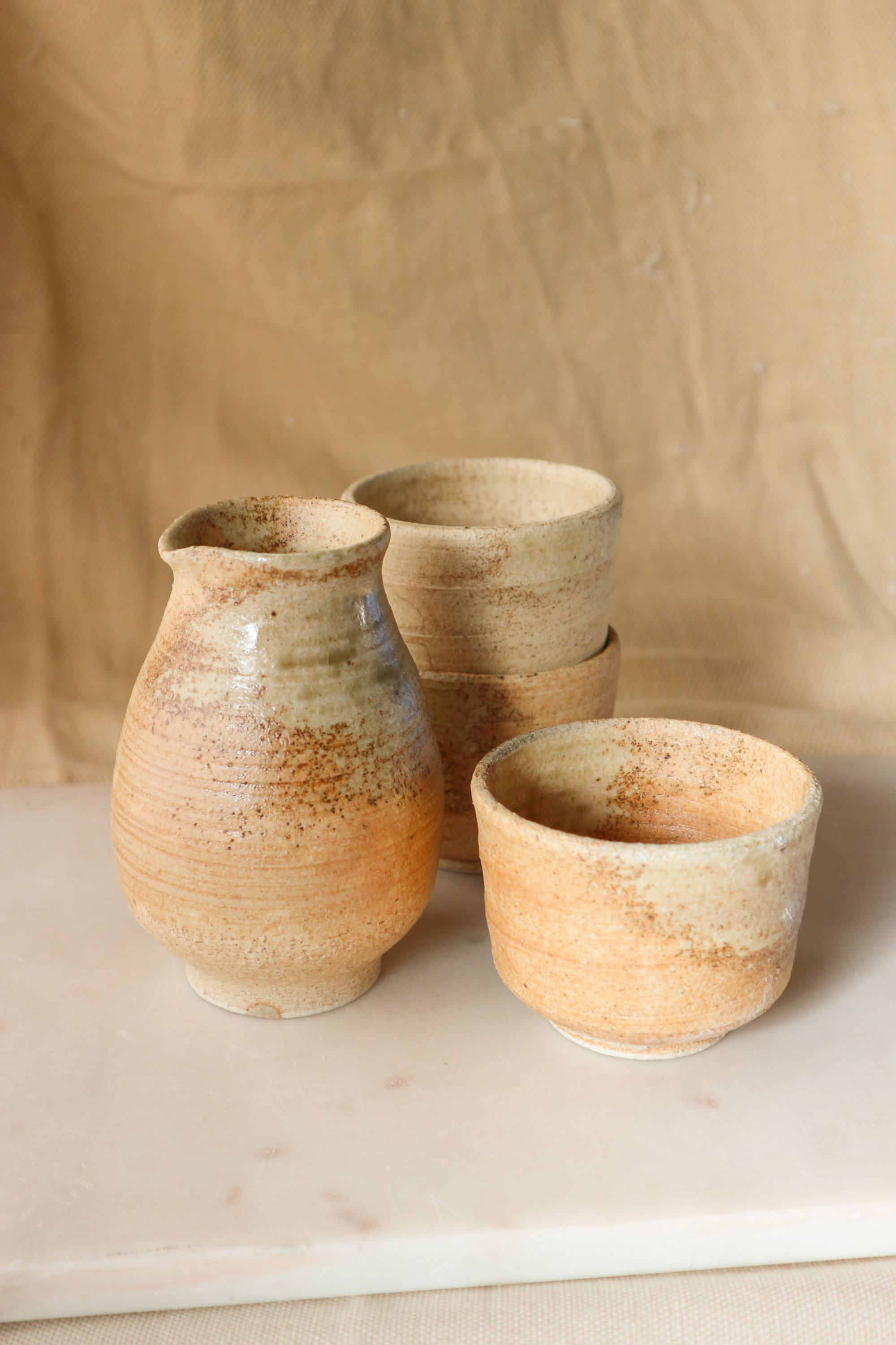 Wood Ash-glazed Stoneware Sake Set, 2024