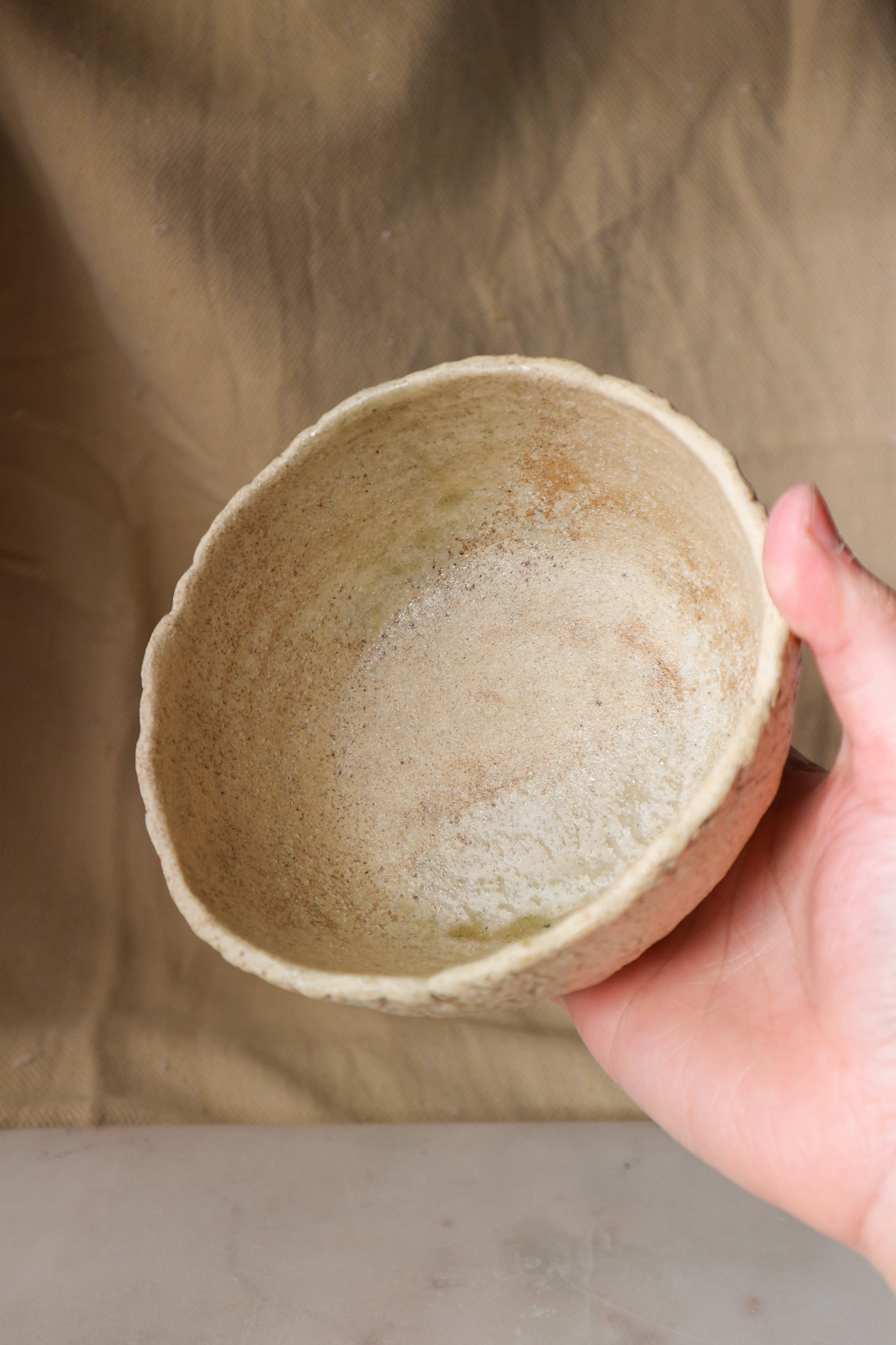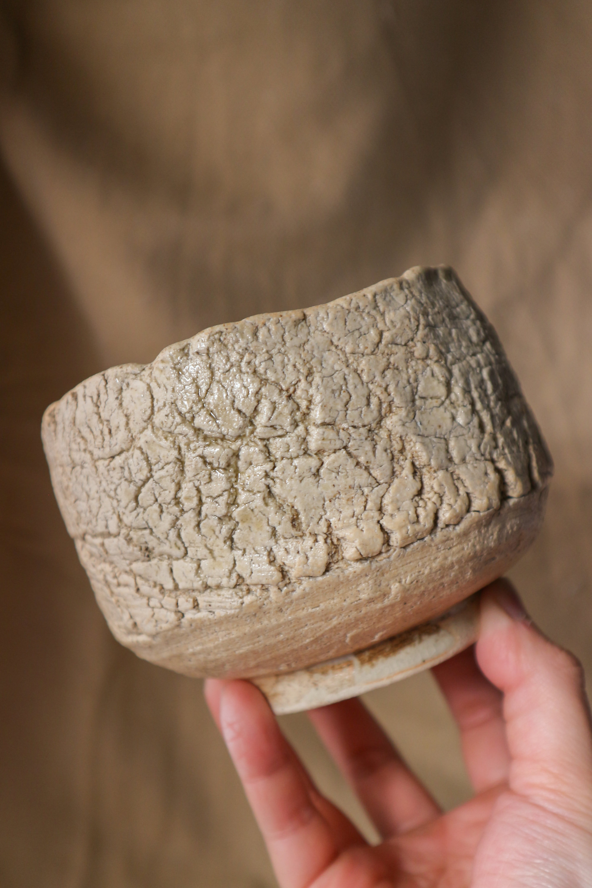 Handbuilt Wood Ash-glazed Stoneware Tea Bowl (茶碗), 2024