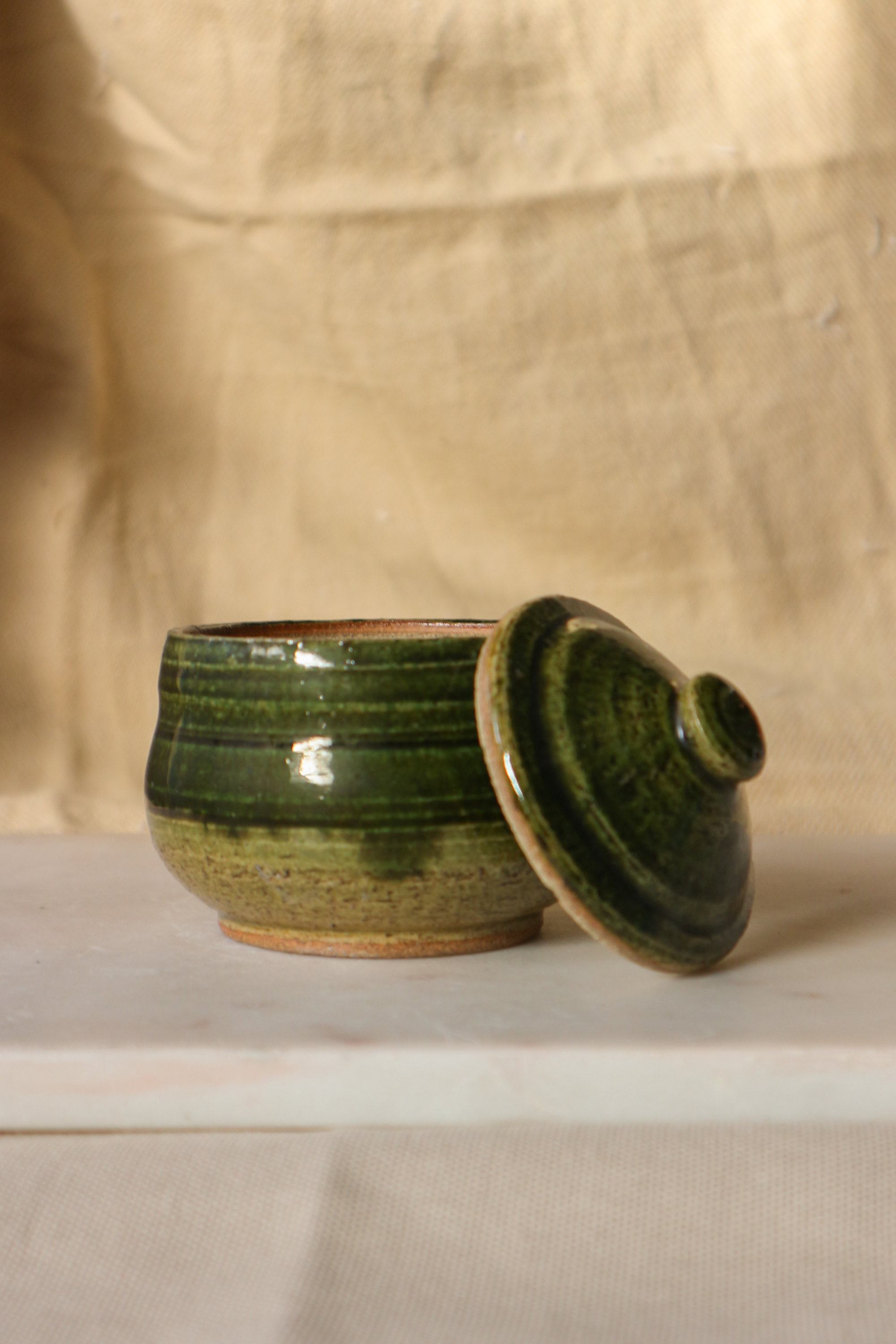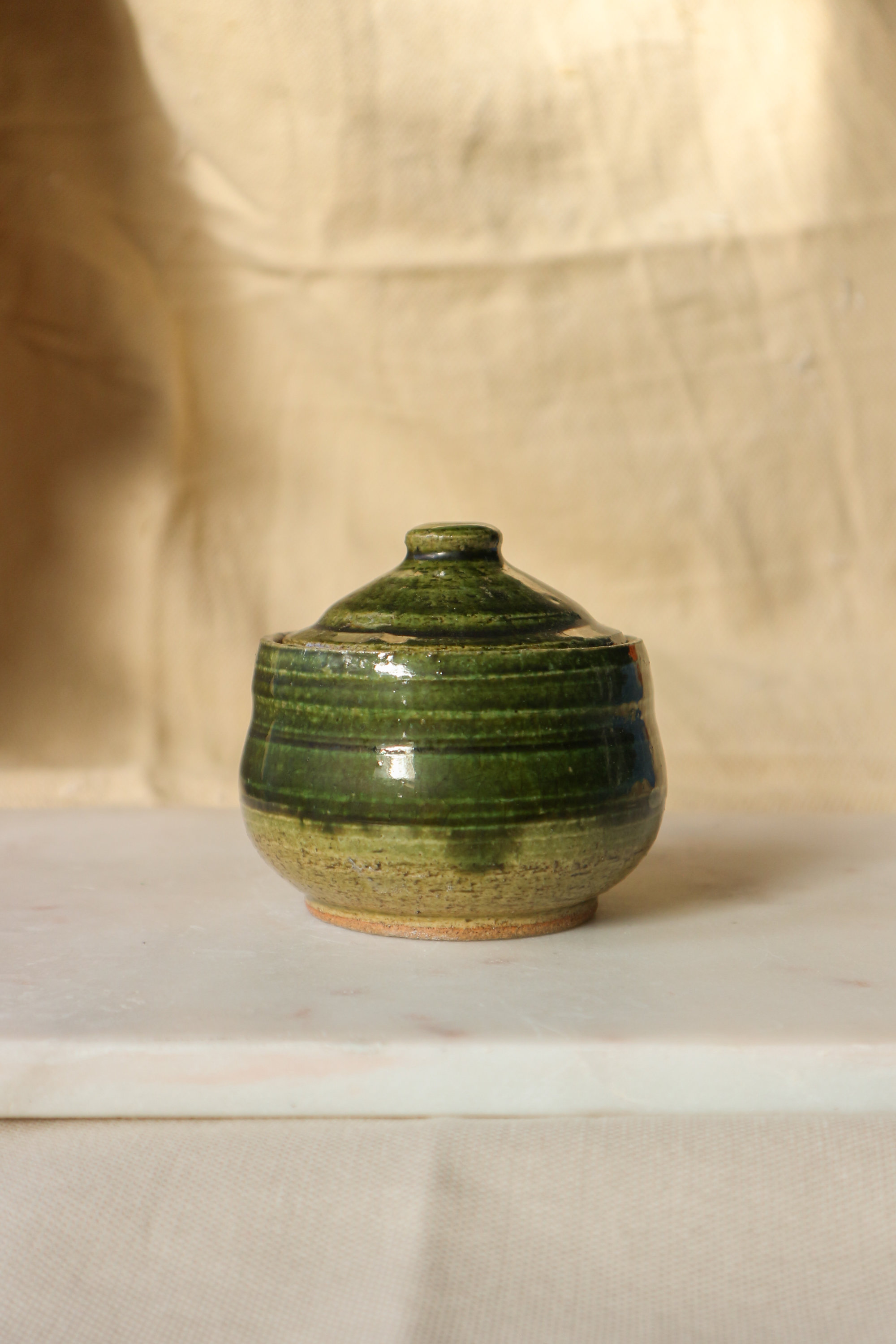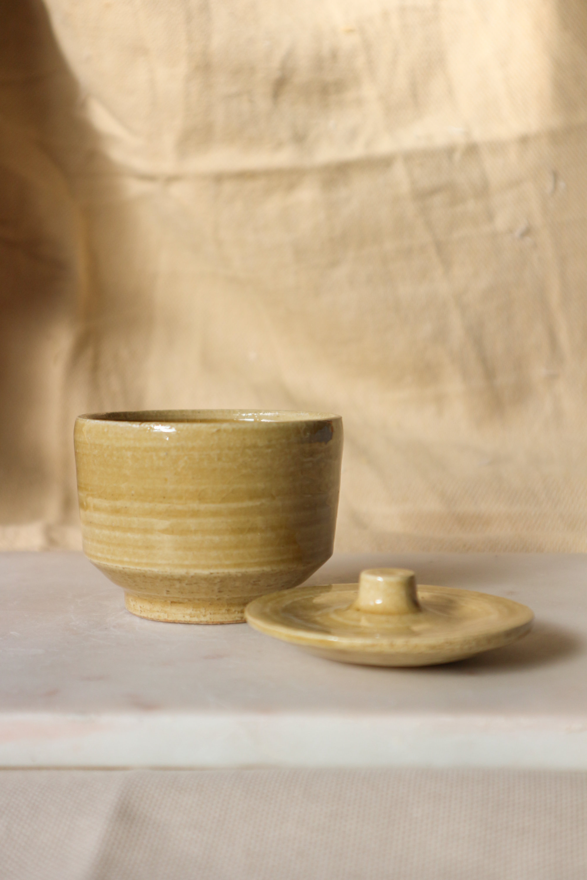 Kiseto-glazed Stoneware Lidded Vessel (蓋物), 2024