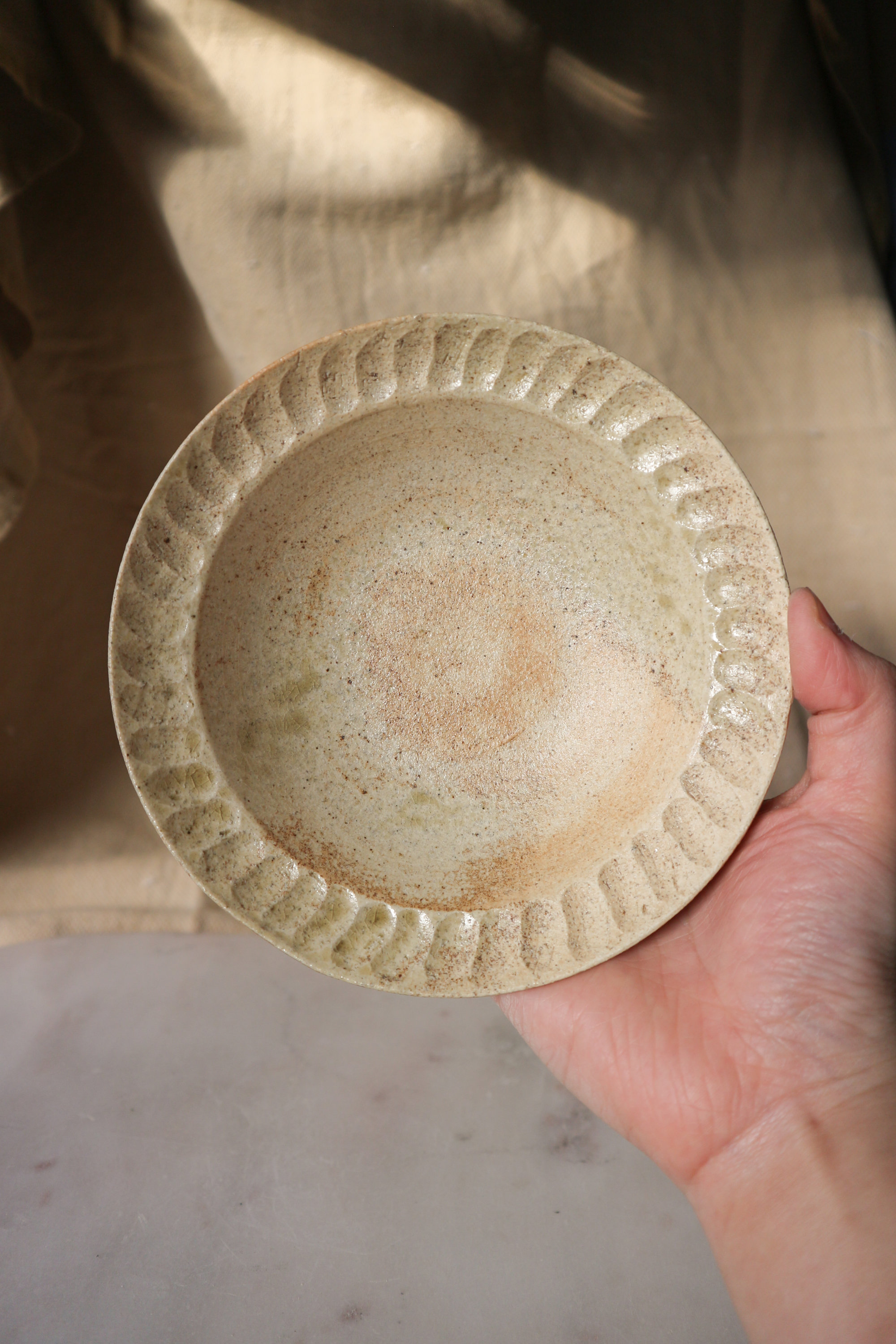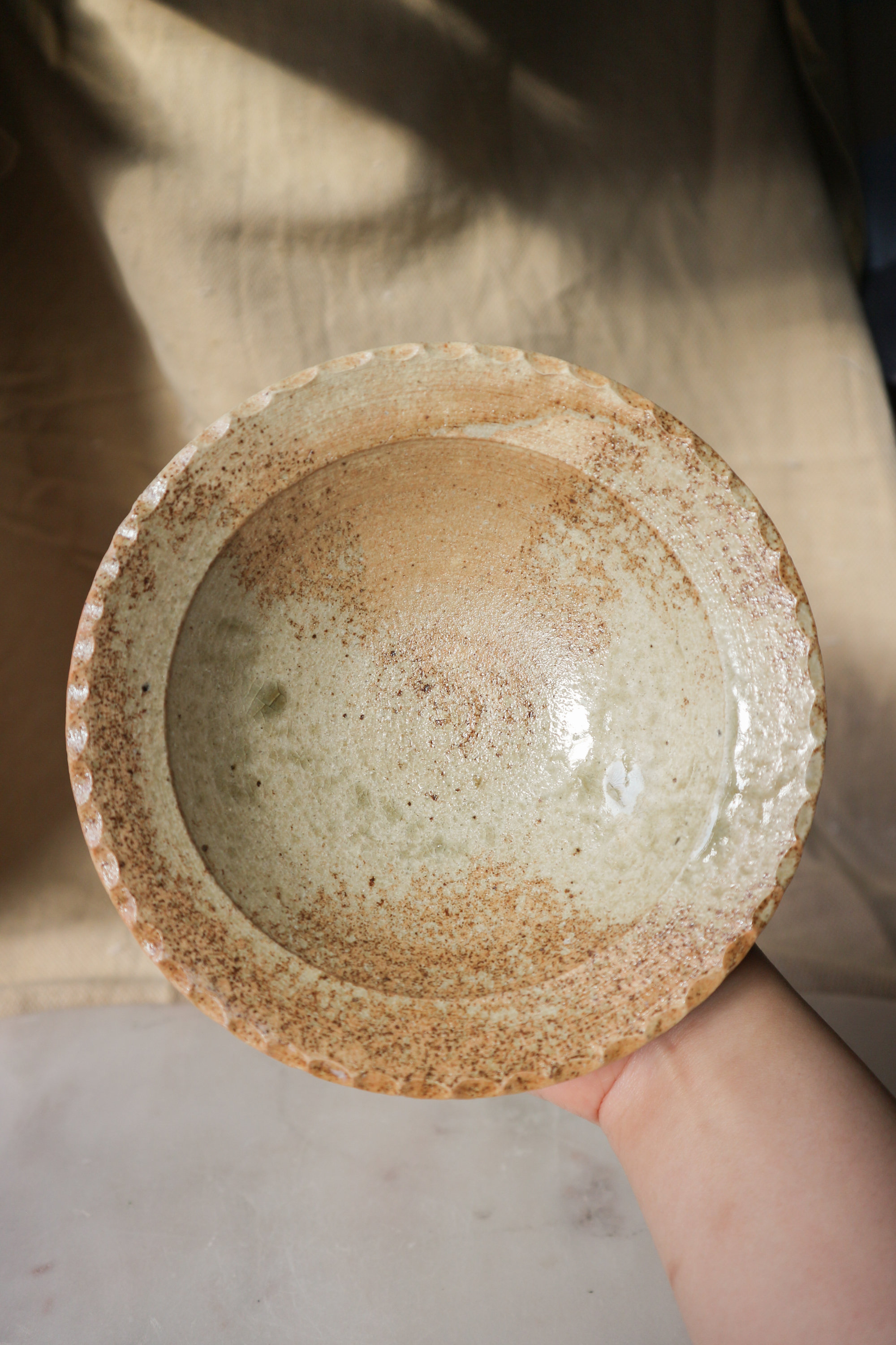 Handbuilt Wood ash-glazed Stoneware Bowl, 2024